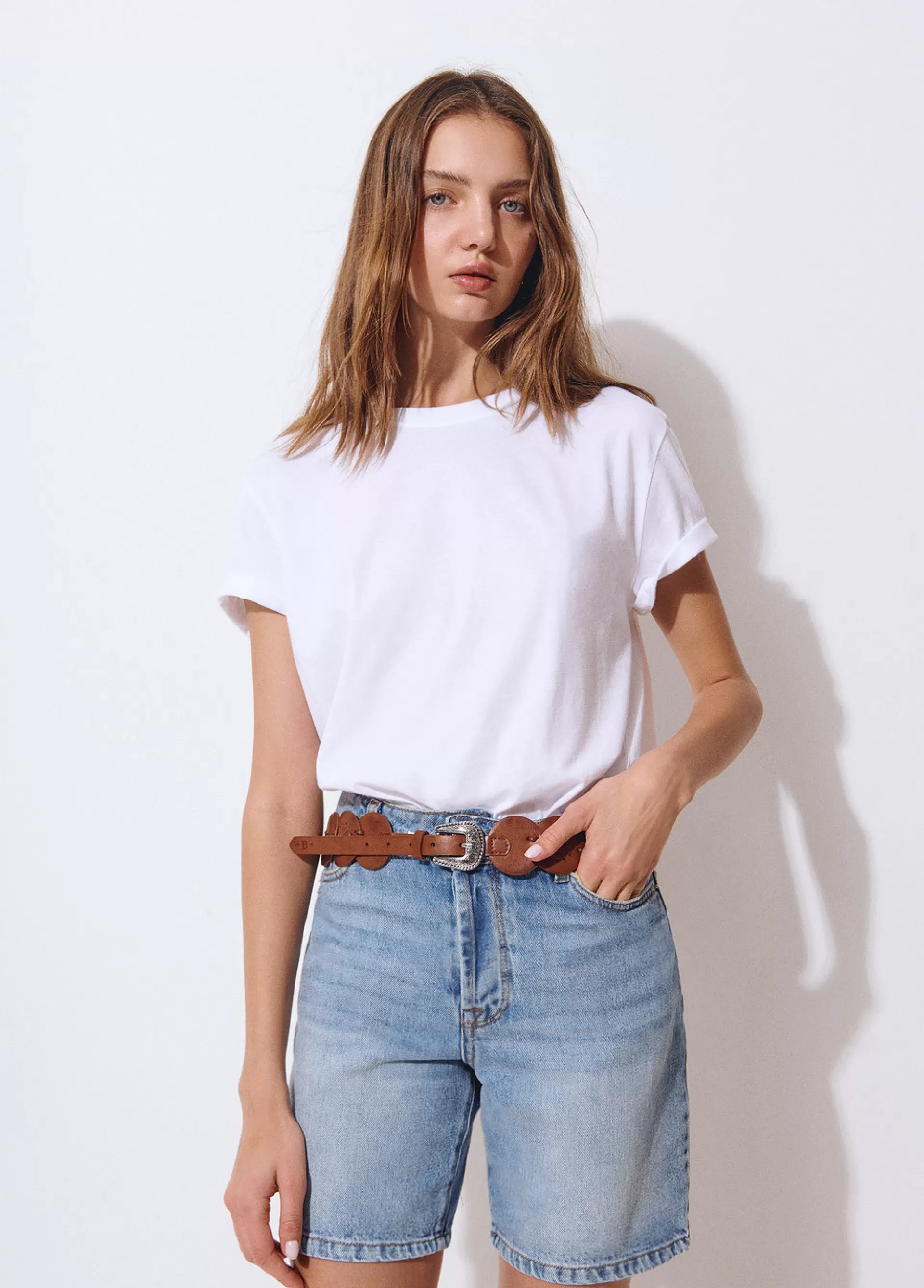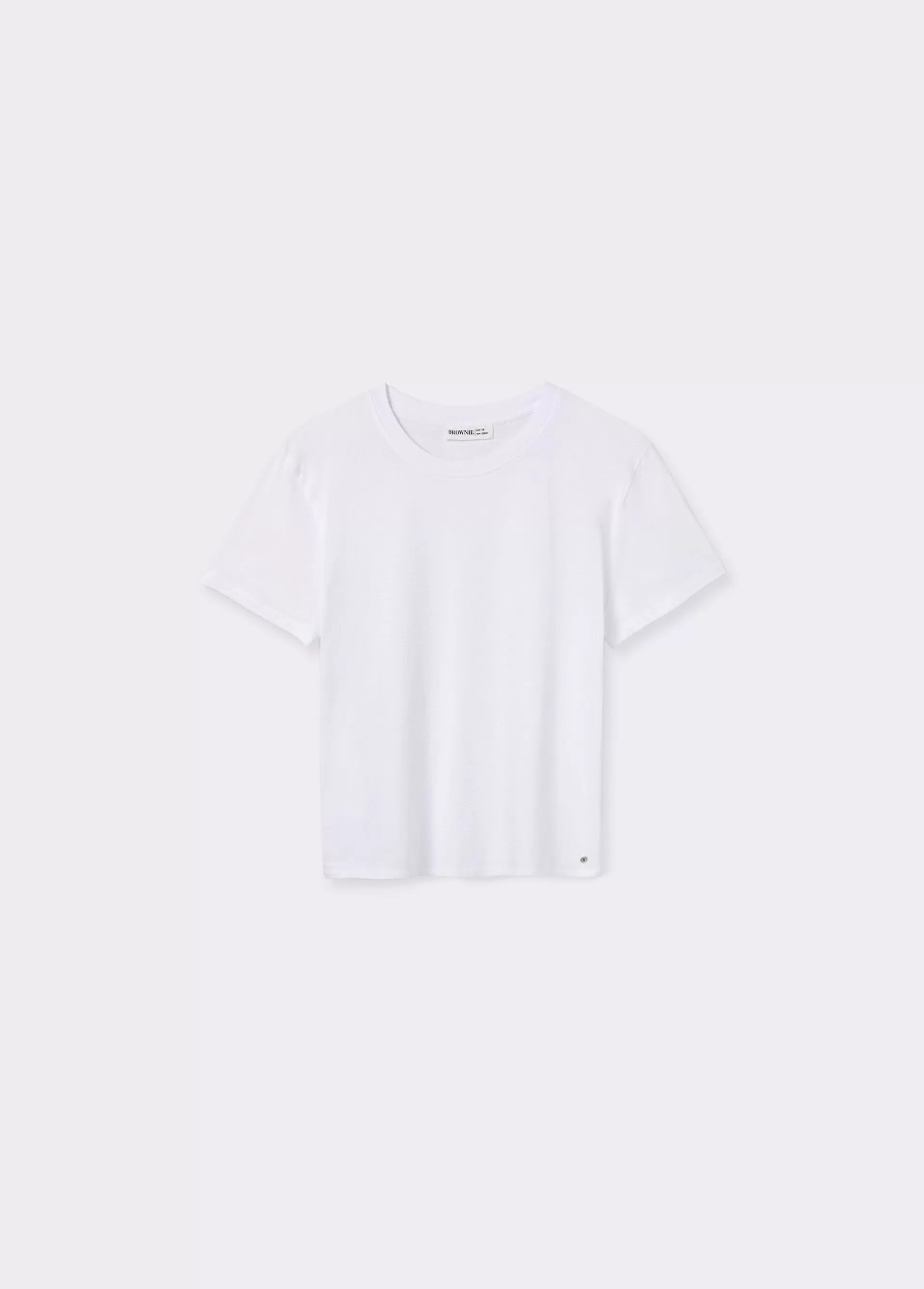 Camiseta básica de algodón de manga corta y cuello redondo.
