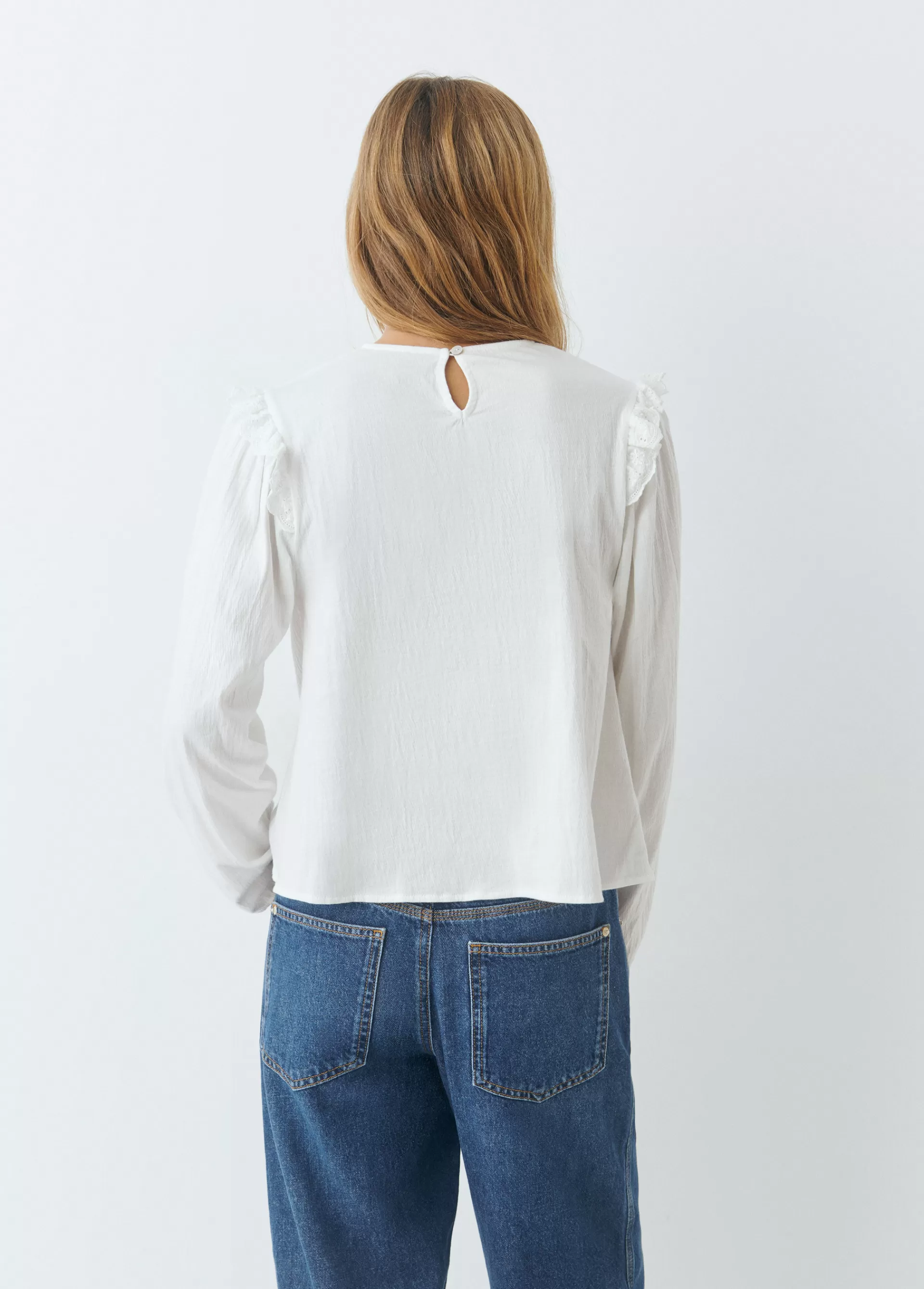 Camiseta de manga larga y cuello redondo con detalle de volantes.
