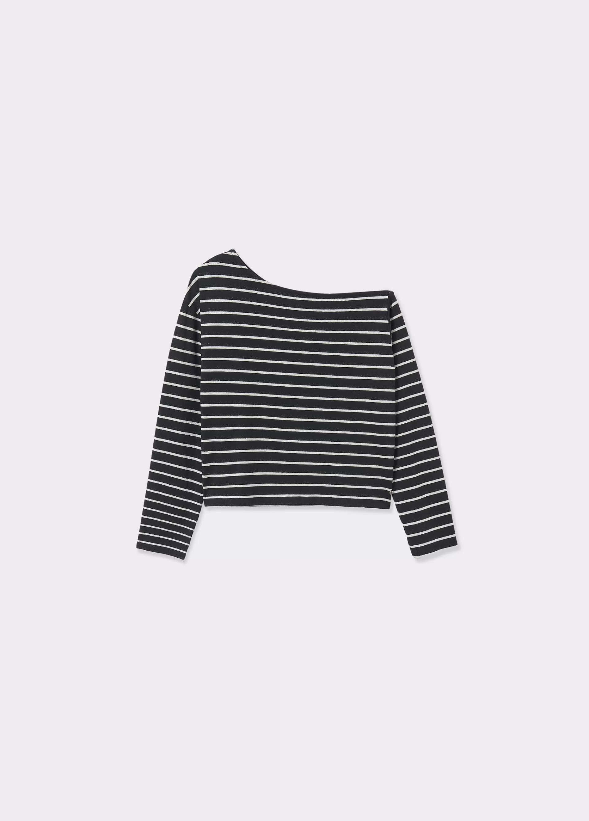 Camiseta de rayas de manga larga, escote de barco y detalles con lurex.