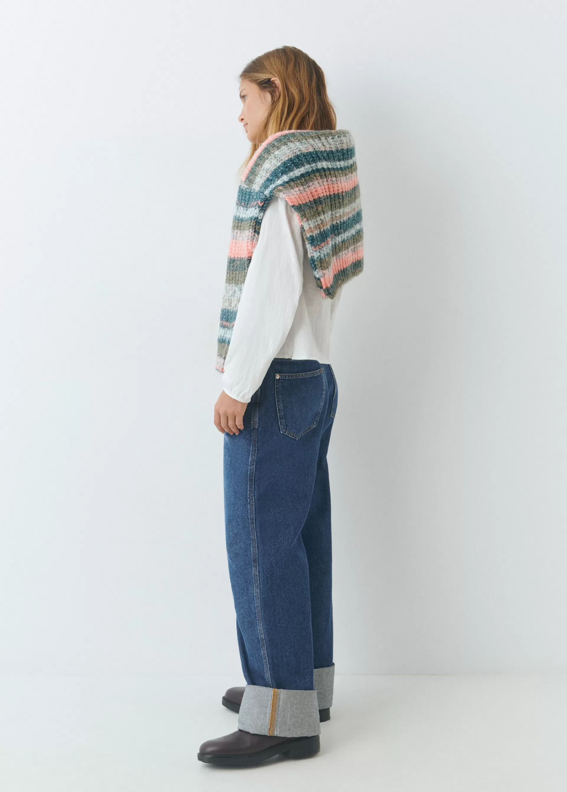 Pantalón recto de tiro medio de algodón con vuelta en el bajo y cinco bolsillos.