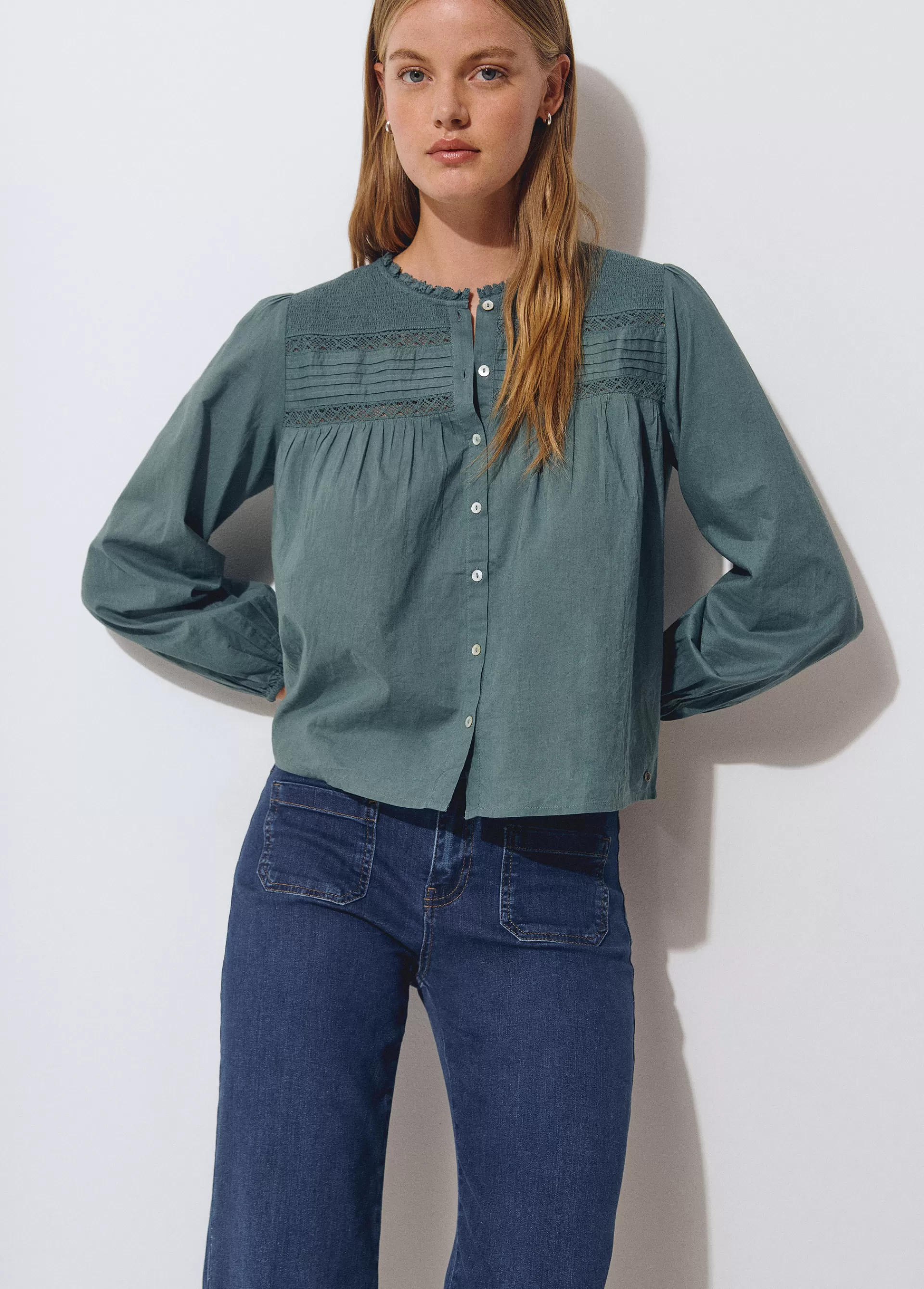 Pantalón culotte de tiro medio con bolsillos cuadrados. Cierre mediante cremallera y botón.