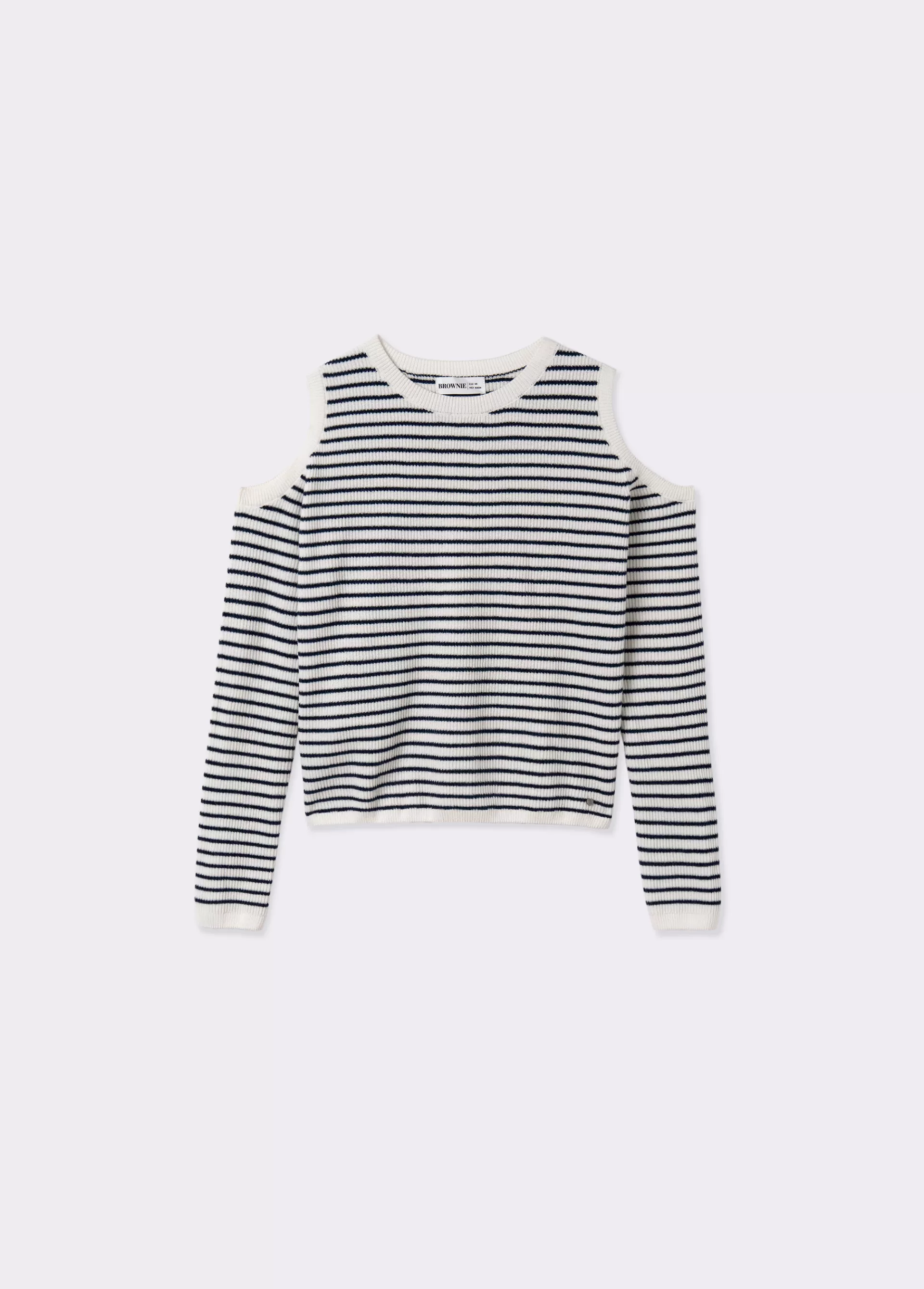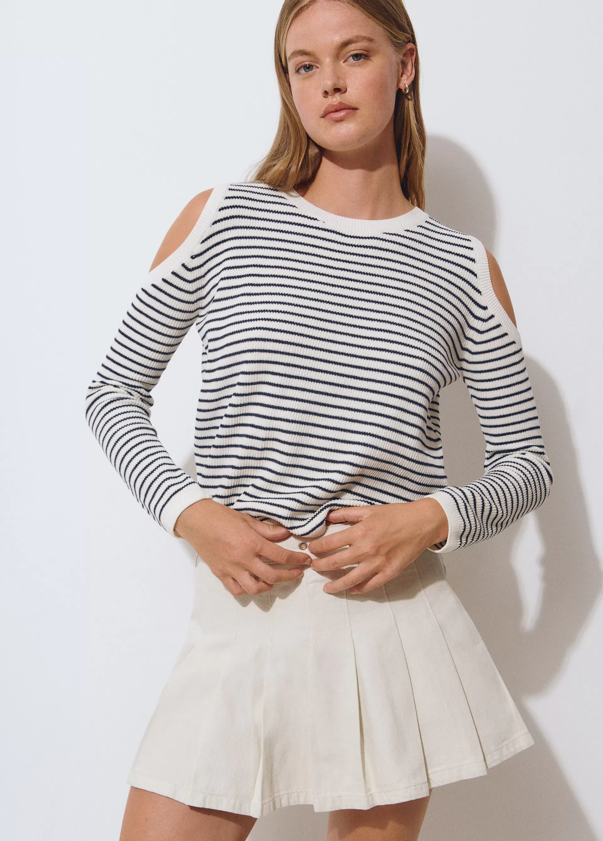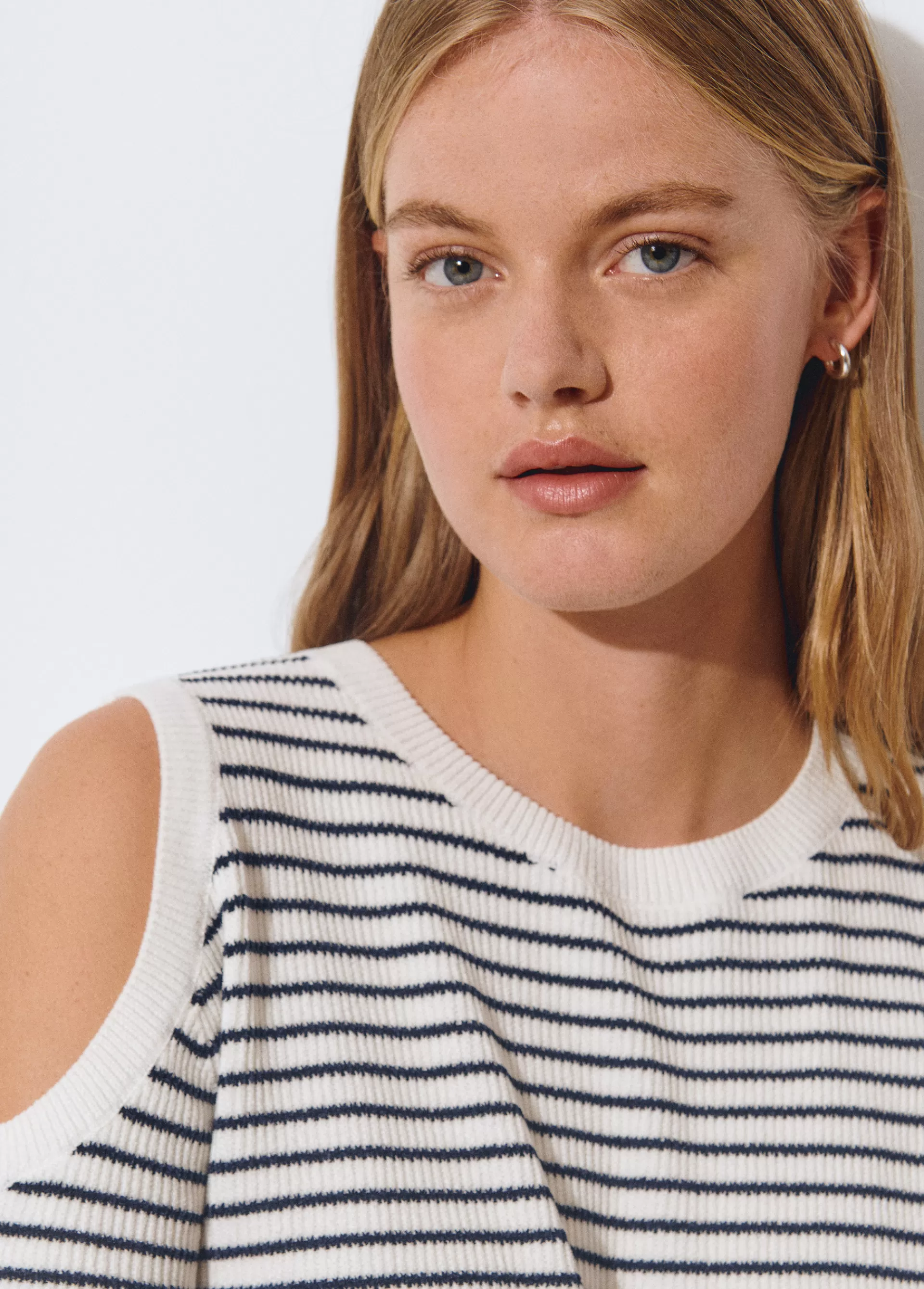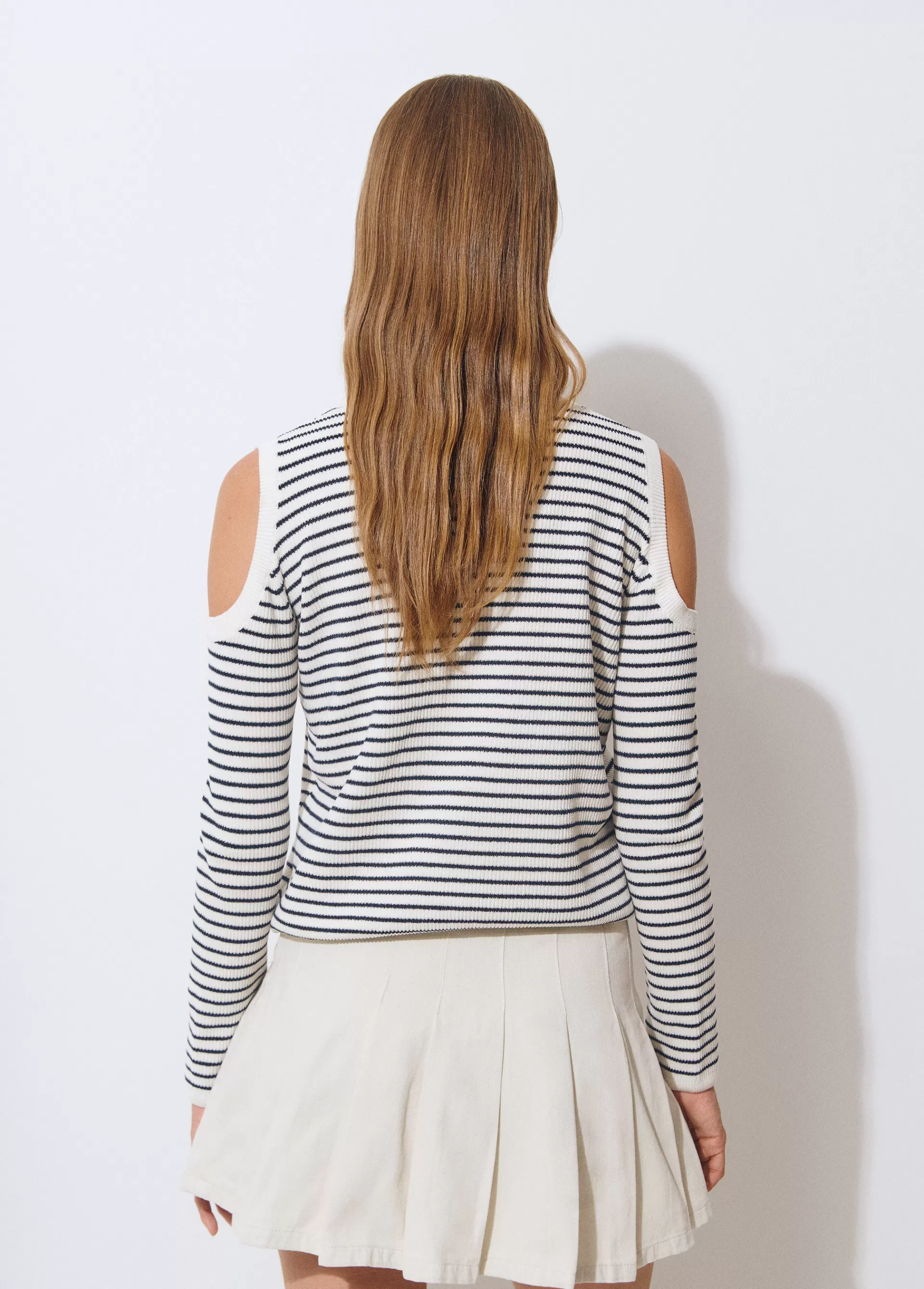 Jersey de chenilla de manga larga de rayas, hombros descubiertos y cuello redondo.