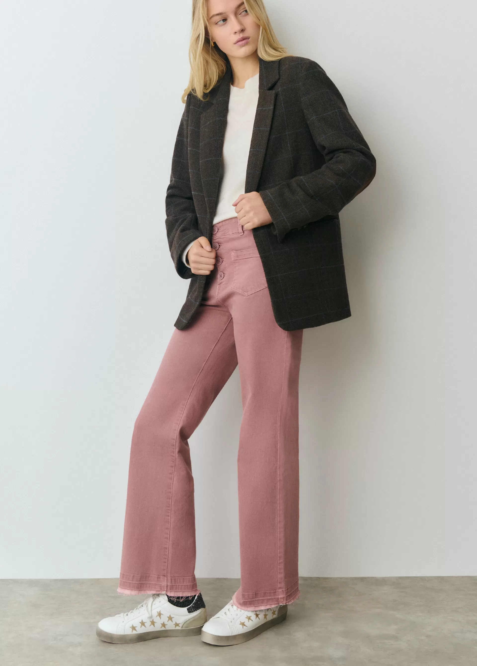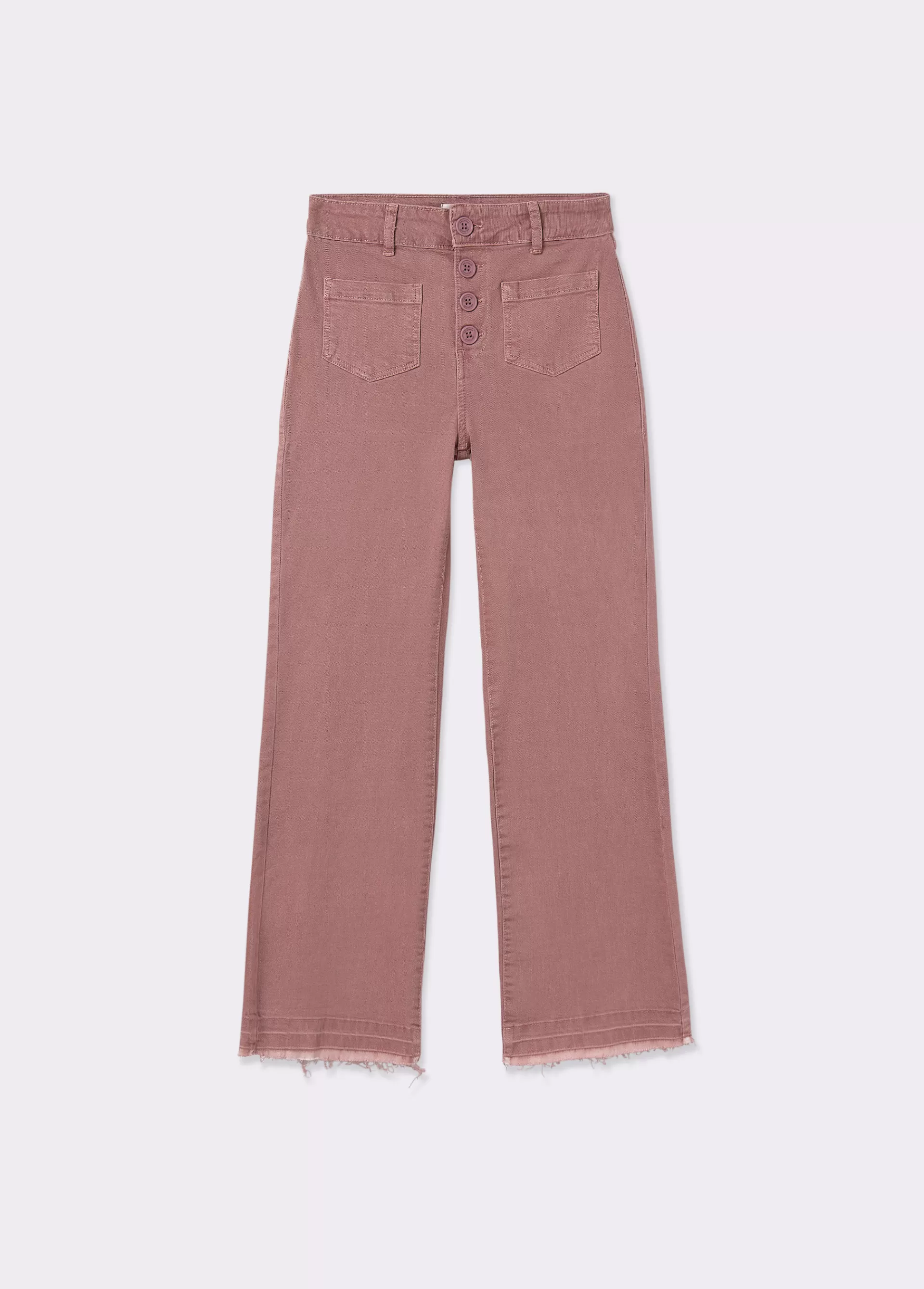 Pantalón culotte con bolsillos con bajo desflecado. Cierre frontal mediante botones.