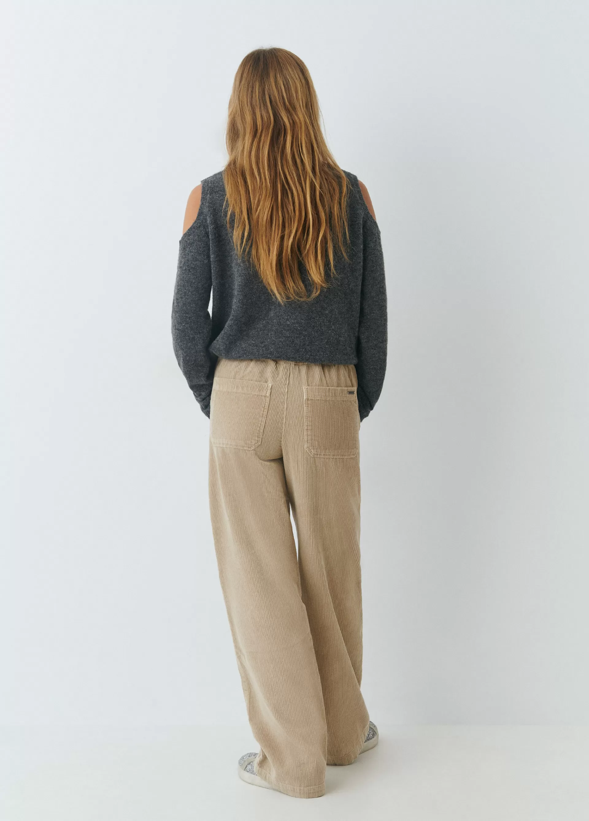 Pantalón recto de pana con goma en la cintura y maxi bolsillos. Cierre mediante cremallera y botón en el frontal.