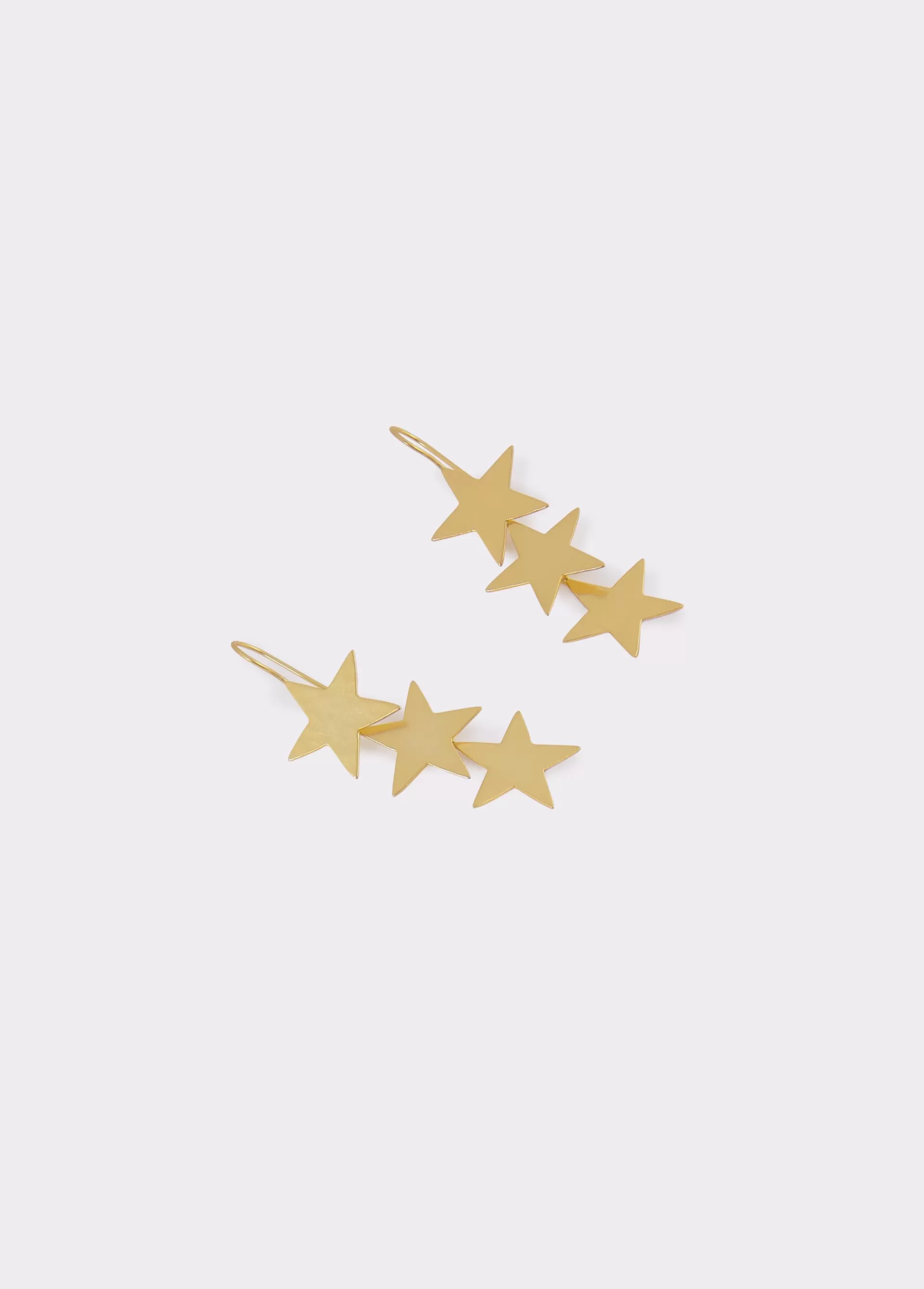 Pendientes largos dorados con forma de tres estrellas.
