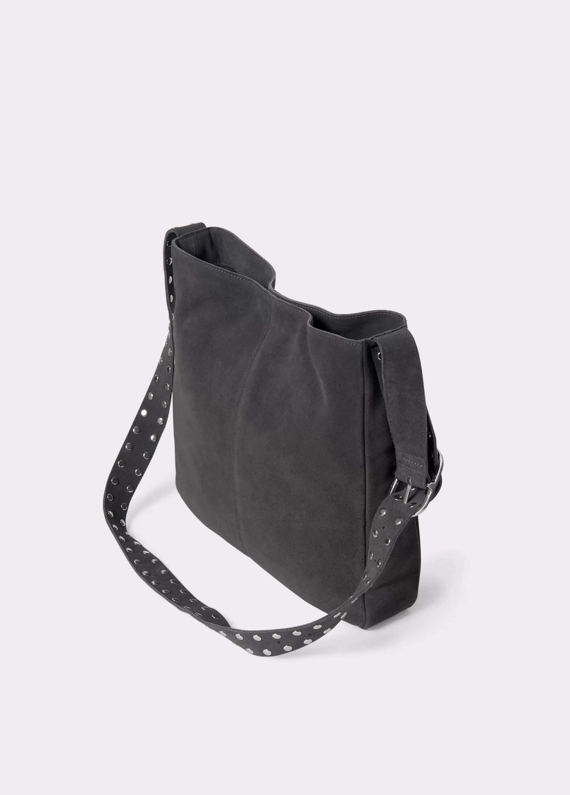 Bolso shopper liso de piel con cremallera en el interior y asa con tachas. Cierre mediante imán.