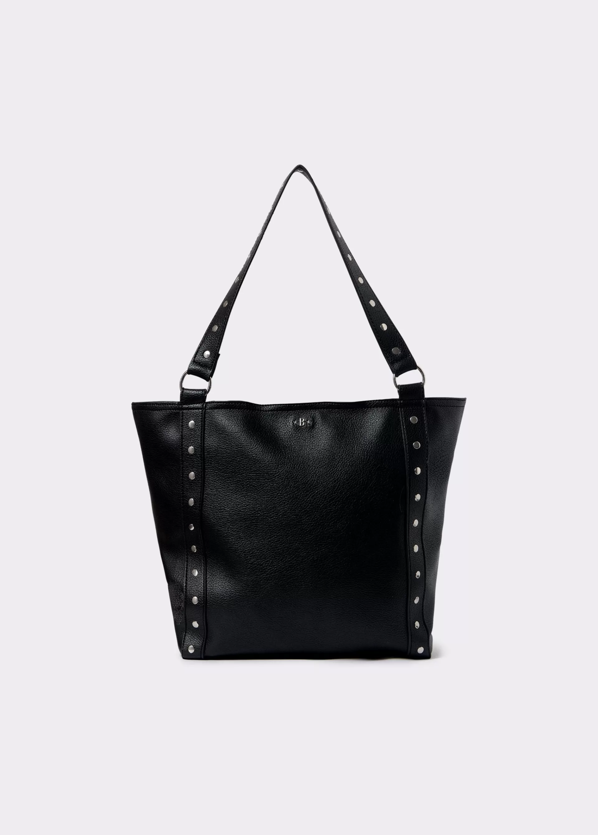 Bolso shopper liso con tachas y cremallera en el interior. Cierre mediante cremallera.