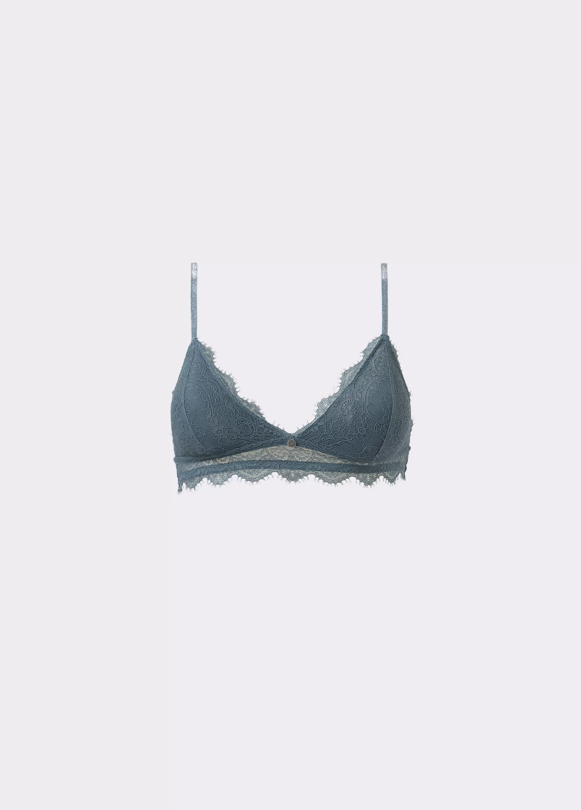Sujetador sin aro liso de encaje y tirantes regulables.